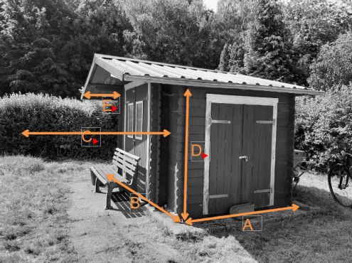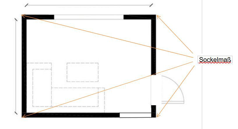 Gemessen wird die Baulichkeit am Sockel. An den Punkten, die die äußersten Ecken des Gebäudes am Boden markieren.
